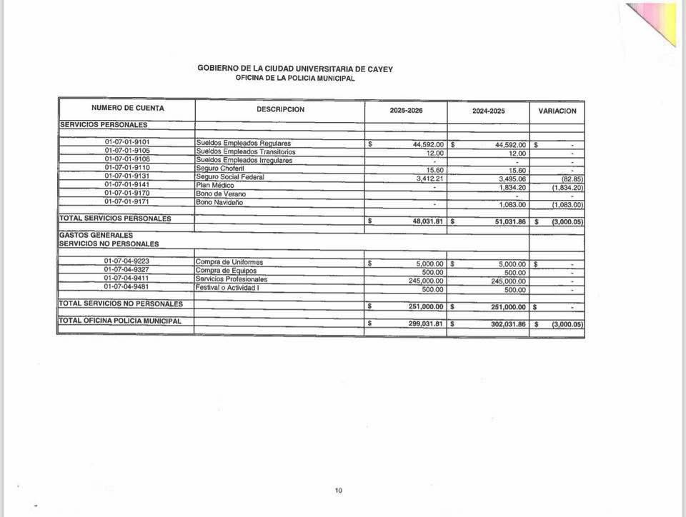 Rivera Santiago, quien en las pasadas elecciones se convirtió en el candidato a alcalde más joven en Puerto Rico en alcanzar cerca de un 10% de los votos, señaló que, según documentos oficiales del presupuesto municipal, existe una asignación de $299,031.81 para la Oficina de la Policía Municipal, a pesar de que en Cayey no existe cuartel de la Policía Municipal ni un cuerpo operativo funcionando actualmente.